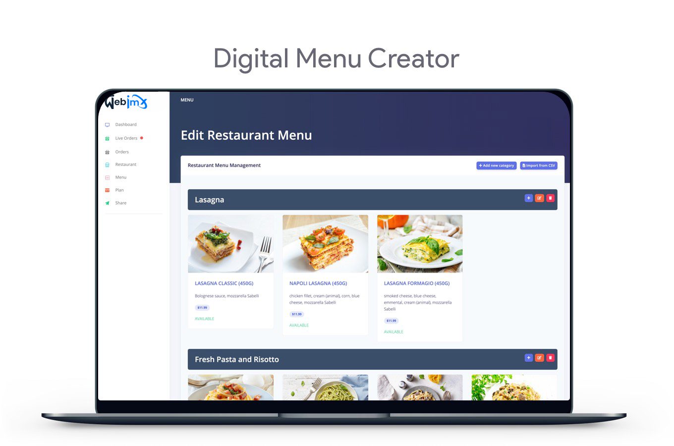 Create a digital menu for your Restaurant or Bar. Share with your clients and let them order via Mobile