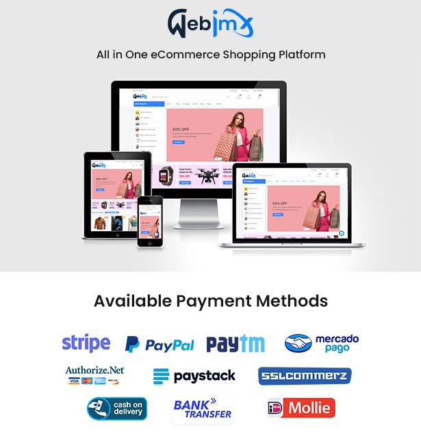 Web IMX WebMart – is All in One eCommerce Shopping Platform. If you have planned to buy a single vendor eCommerce shopping platform. You can choose Web IMX WebMart as the most suitable platform for single vendor eCommerce. You can use it for Man & Women Fashion, Electronics & Computers, Toys & Kids, Food & Grocery, Tools & Parts, Beauty & Health, Watch & Jewelry, Home & Furniture, Sports & Outdoors, Physical, Digital & License Product Sell etc. eCommerce platforms are gaining more and more popularity nowadays and we keep maintaining all the demands of our users. The script has unlimited brands, products, coupons, orders, category create options. It comes with multiple payment gateways, full content management system, SEO, order tracking system, and more…